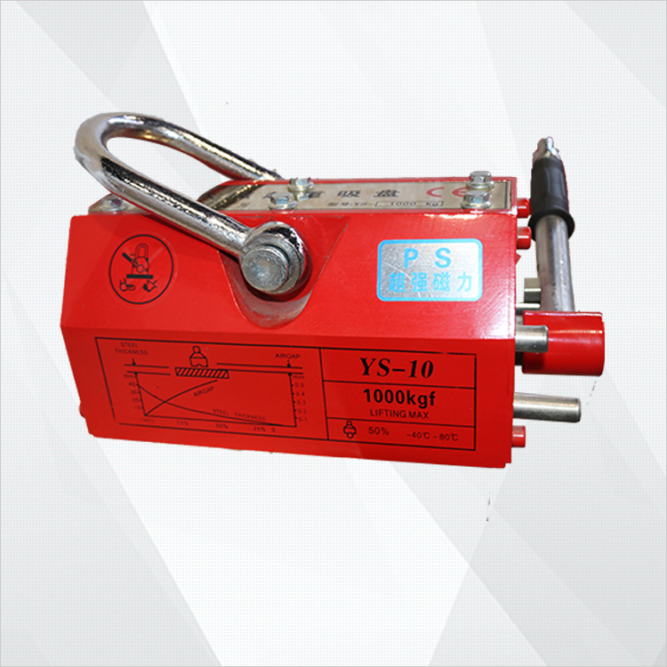 YS係列強力永磁吊裝器主要在吊裝過程中用於吸(xī)持板塊狀或圓柱形鐵磁性材料的工件,具有結構輕(qīng)巧,操作方便,吸持(chí)力強,安全可靠等(děng)特(tè)點,有助於改進裝卸搬運作業(yè)的工作條件(jiàn),提(tí)高其勞動生產率,因此在工廠、碼頭、倉庫和交通運輸業中,已廣泛地用作為吊(diào)裝工具。